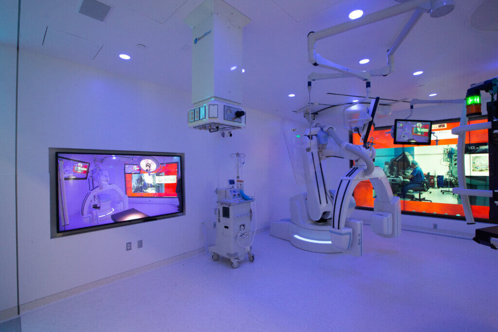 The Hybrid OR features a Siemens Artis Zeego system for interventional, 360-degree imaging capabilities, an integrated Trumpf operating table, Stryker integration and communications equipment, and a Caresyntax intelligence platform.